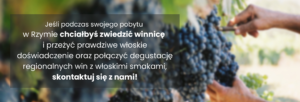 Jeśli podczas swojego pobytu w Rzymie chciałbyś odwiedzić winnicę i połączyć wino z włoskimi smakami, skontaktuj się z nami! - Wybierz małą grupę lub prywatne doświadczenie.